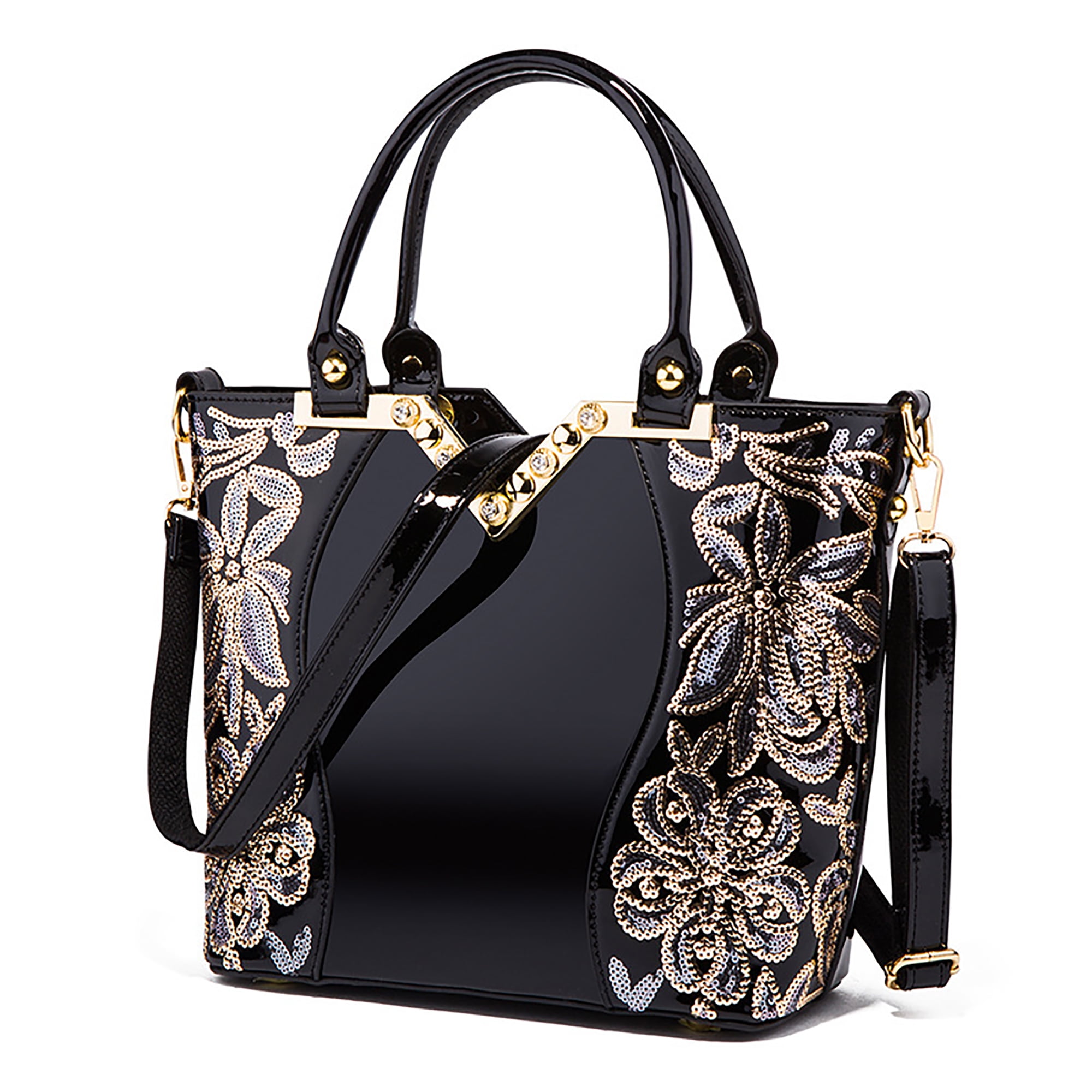 Handbag For Women Gmyle Flowers Pattern Beads Patent Leather Rhinestones Shoulder Crossbody Tote Bucket Bag Fashion Large Capacity Gift For Mother Wife Girlfriend Black Walmart Com